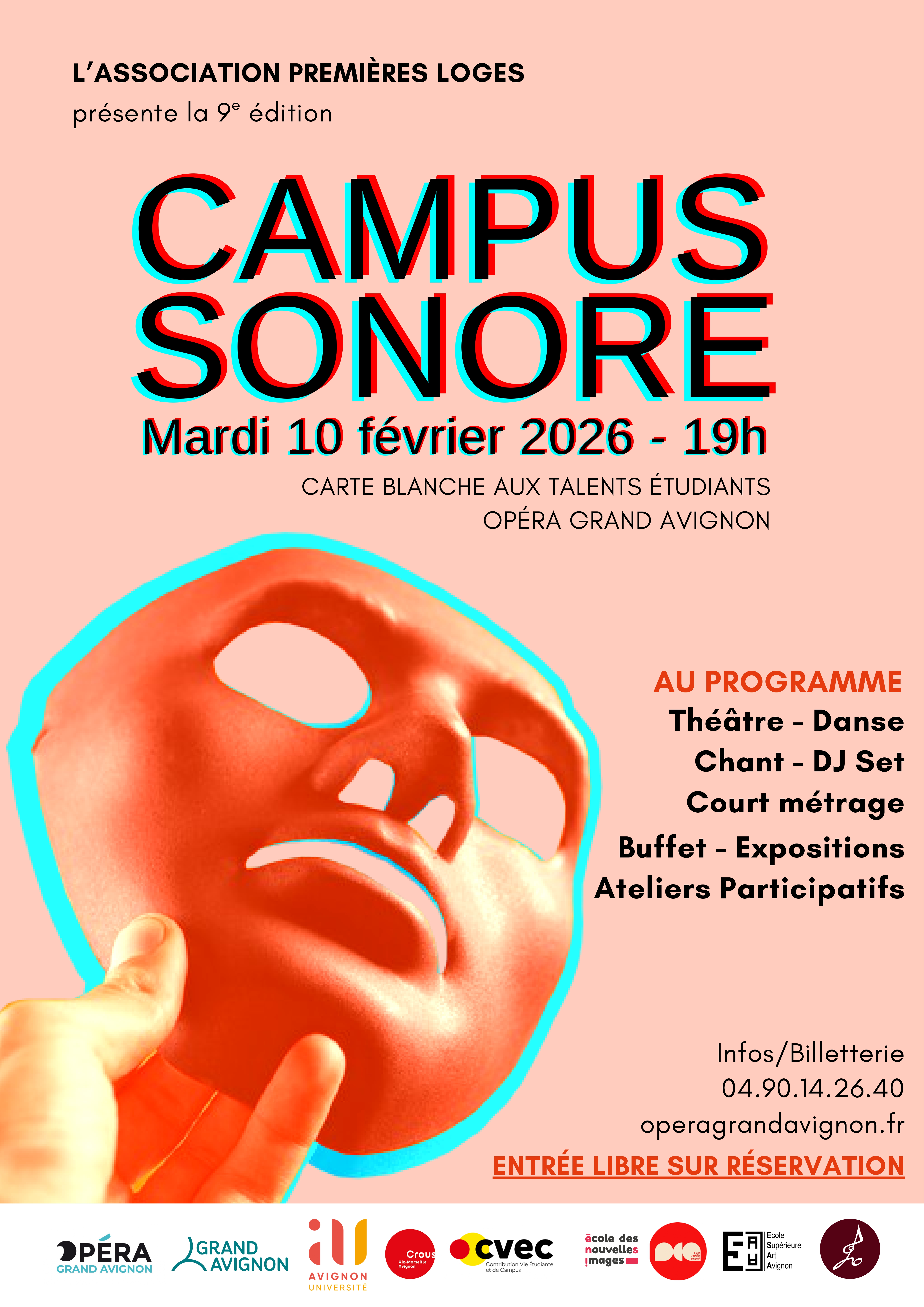 L’Association étudiante Premières Loges et l’Opéra Grand Avignon vous convient à la 9ᵉ édition de Campus Sonore qui se tiendra le 10 février 2026 à partir de 19h à l’Opéra Grand Avignon.