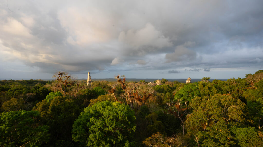 Je vais illustrer mon activité par une photo du site de Tikal, prise de la pyramide de Mundo Perdido, qui illustre ce que j’essaye d’étudier et comprendre : des fragments de civilisations humaines, parfois à l’échelle moléculaire, au cœur d’écosystèmes complexes.