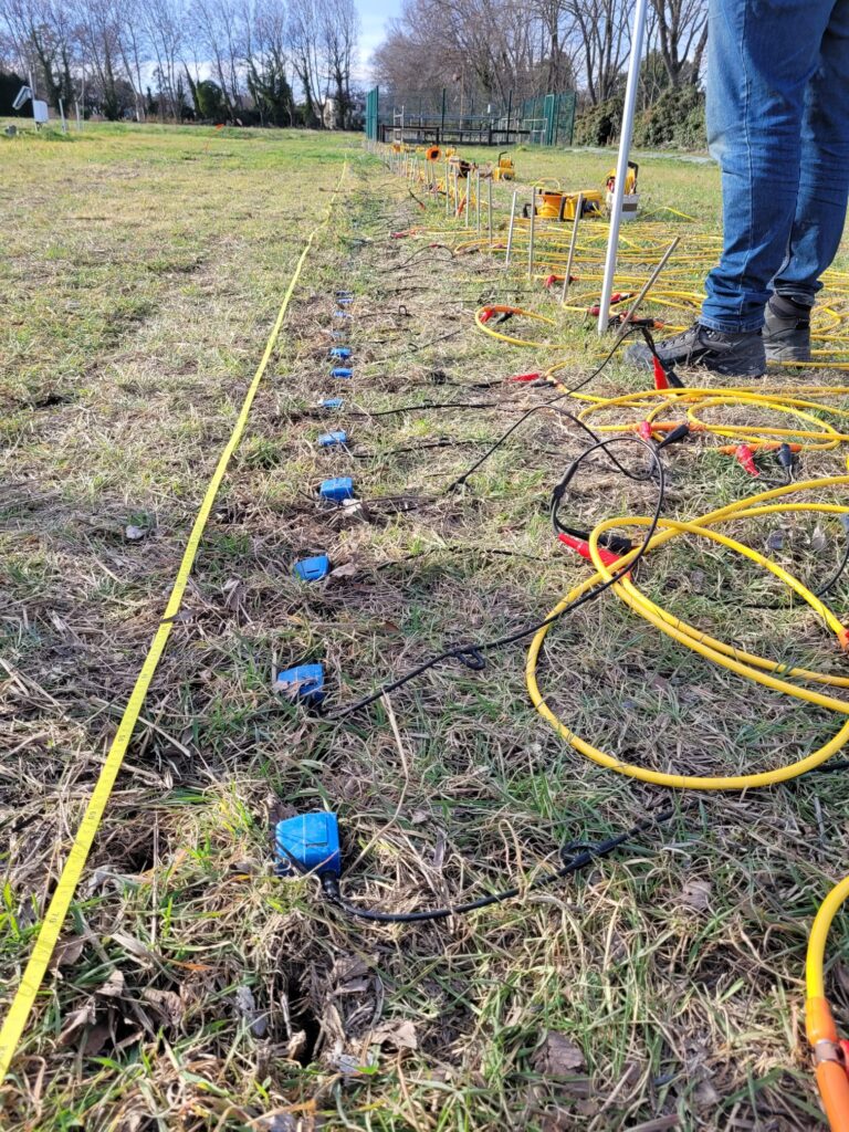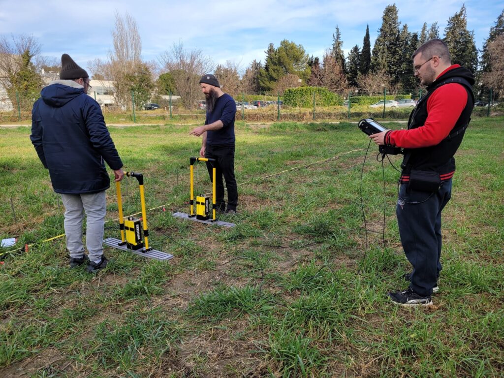 Je passe une grande partie de mes journées derrière un ordinateur : déjà car ma recherche repose principalement sur la simulation numérique mais aussi, en tant que Maître de conférences, car je suis continuellement en train de répondre à des mails — la légende raconte que nous serions les secrétaires les mieux rémunérés du marché ! Cela dit, je préfère vous partager quelques photos de mesures en extérieur, réalisées récemment avec les dispositifs sismiques et le géo-radar de notre équipe. Cela reste représentatif d’une partie du métier… et c’est nettement plus photogénique !